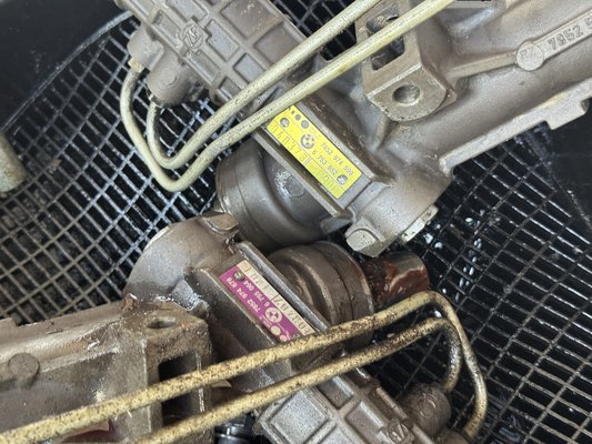Az E46-hoz többféle kormánymű is készült, cikkszámaiban és a plakettjei színében különböztethetőek meg, némelyik gyorsabb, némelyik feszesebb, némelyik kevesebbet fordul, de a különbségek nüansznyiak. Az enyémben lila plakettes volt, helyette aranyat vettem, mert a mindentudók szerint ez csak minimálisan feszesebb, de igazán még senkitől nem hallottam, mi a pontos különbség. Kicserélni pont egy óra volt csápos emelőn olaj feltöltéssel és próbakörrel együtt. Eddig ez volt az egyik leggyorsabb javításunk az autón, pedig nagy melónak tűnik.