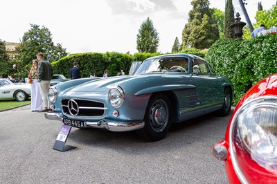 Matt fényezéssel, kopásokkal, láthatóan megőrizve szomorkodott a 300SL Roadster a fák tövében, maga Alex Birkenstock érkezett vele, ha mond valamit a neve, akkor már tudod, hogy a papucsaiból sikerült összelapátolni nem kicsi vagyonát