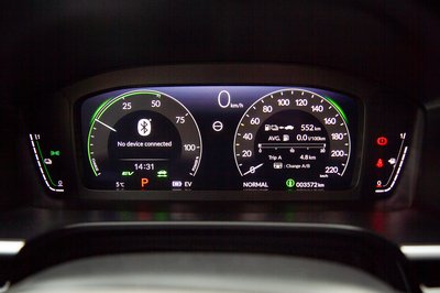 A sofőr előtti kijelző 10,2 col, szokatlan módon nagyobb, mint a középső, ami 9 col