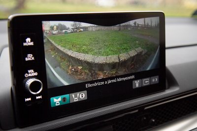 Indexelésre megjelenik a tükrökbe épített kamerák képe, besoroláskor hasznosak a berajzolt segédvonalak. A Hyundai megoldása annyiban okosabb, hogy a sofőr előtti kijelzőn jelenik meg, nem pedig a középső kijelzőn