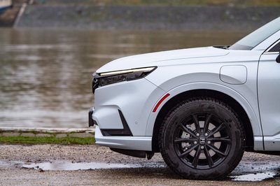 Az új CR-V az elődhöz hasonlóan fehér fényezés + fekete felni kombinációban érkezett