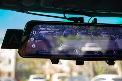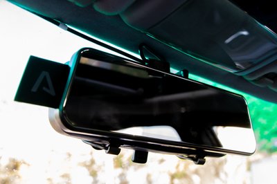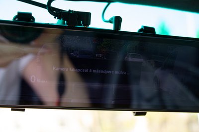 Így illeszkedik a visszapillantómhoz az új visszapillantó. Az új alján láthatjuk is a kijelző kapcsolóját.