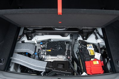 A csomagtér padlója alatt lakik a 12- és a 48 voltos akkumulátor is, így nincs hely pótkeréknek