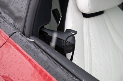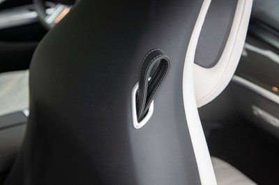 Érdekes megoldás: ezt a bőr fület kell meghúzni az első ülés előrehajtásához, de nem valami kényelmes a használata