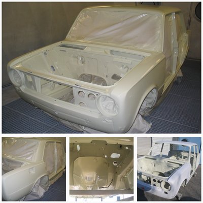 A felső képen az első tulajdonos gyermekei – Valéria és László. Bal alul a kocsi a restaurálás előtt, jobbon az első tulajdonos, László és felesége, aki még megélte, hogy kocsijuk OT rendszámot kapott
