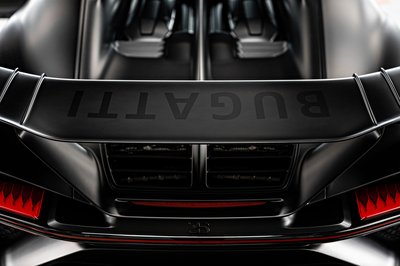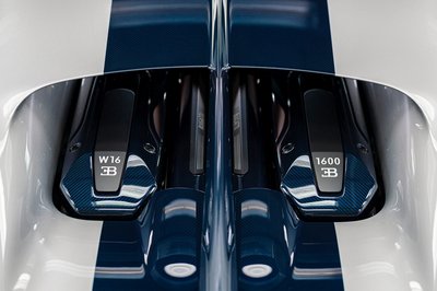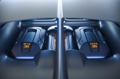 A W16-os motornak speciel vége, a Bugatti jelenleg gyártott legnagyobb szénszálas eleme viszont a kétméteres oldalpanel, amit majdnem egy hét megcsinálni, és két órán át sül 120 fokon nagy nyomás alatt, mielőtt indulhatna a felületkezelés.