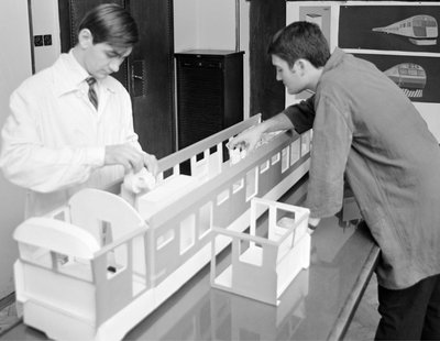 Budavári István és Zsigmond Attila ipari formatervezők dolgoznak az M63-as makettjén