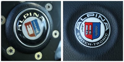 BMW és Alpina emblémák, 2002ti és Alpina felirat