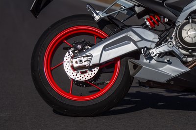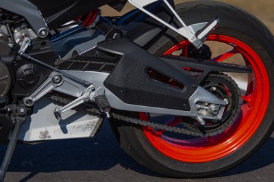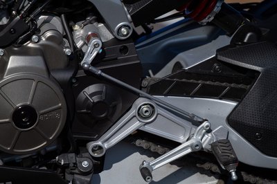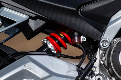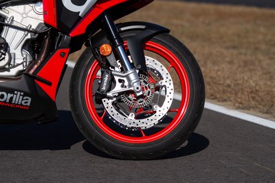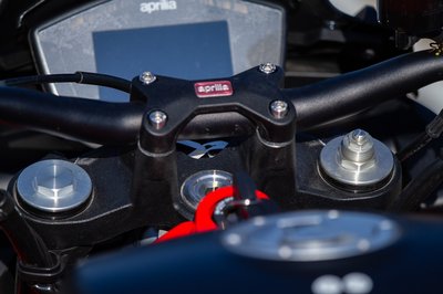 A Tuono első teleszkópja egyszerűbb az RS 660-nál, de utcai használatra bőven megfelel