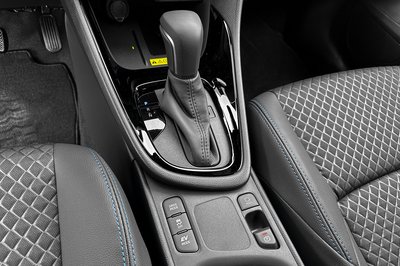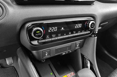 Egyelőre maradt a váltókar, de mivel rövidesen csak hibrid rendszerekkel lesz elérhető a Yaris, ezért nem érdemes fenntartani a helyet a kézi botnak