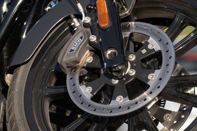 Elöl két 300-as féktárcsa van, ezeket egy-egy négydugattyús Brembo nyereg fogja. Lehetnének kicsit határozottabbak is
