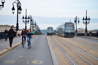 Bordeaux forgalomcsillapított hídja, a Pont de Pierre villamossal
