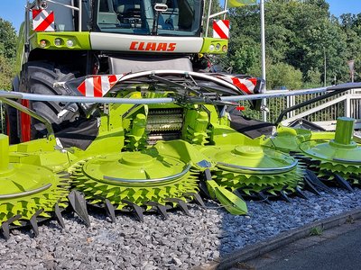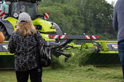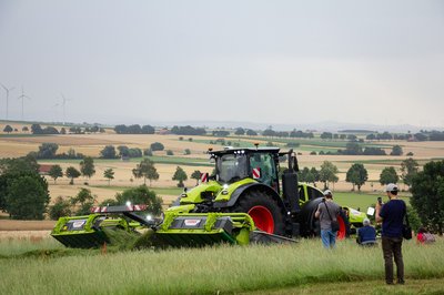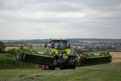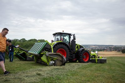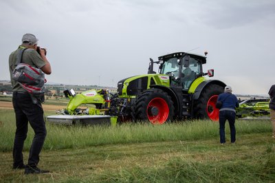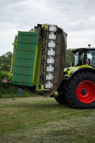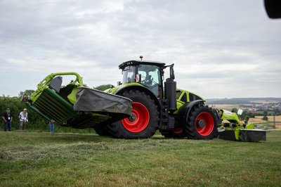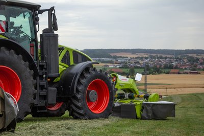 A traktorok és kombájnok mellett egy új tárcsás kaszát (disc mower) is bemutatott a Claas, a névadónak pacsi: DISCO 9700