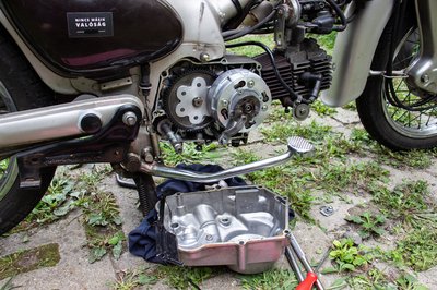Persze az olajat is le kell engedni. Egy nyolcdecis befőttesüvegbe befér az olajtöltet. Viszont 1500 km-enként kell cserélni