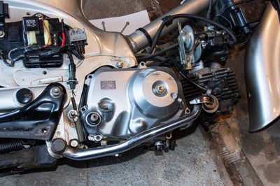 Már a helyén a kuplung, meghúzva a hornyos anya is