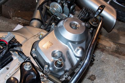 Ott is van, már csak a csavarokat kell meghúzni. No, meg az összes függeléket, lábtartót, kipufogót, lábvédőt, berúgókart visszaszerelni. Nem nehéz, de sok