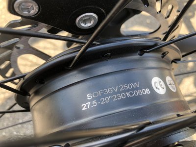 Ez maga a motor. A hátsó agyba van építve a 250 wattos, brushless motor – maximális teljesítménye akár 400 W is lehetett