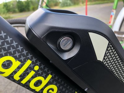 Az Eleglide akkumulátora egy kulcsos zár oldása után leszerelhető, akár be is vihetjük a lakásba/irodába tölteni