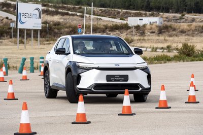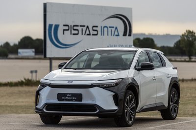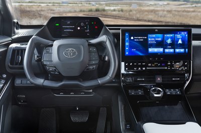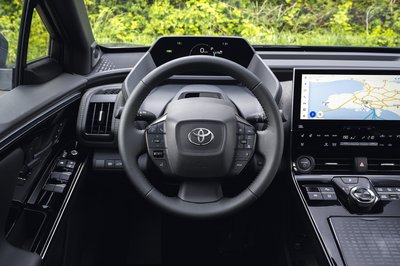 Kívülről a rendszám feliratán kívül semmi nem különbözteti meg az elektromos kormányos bZ4X-et a többitől