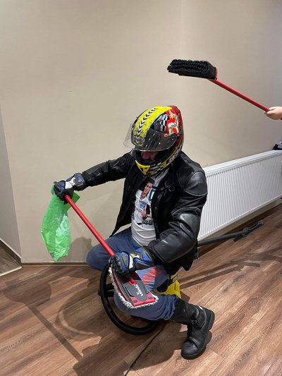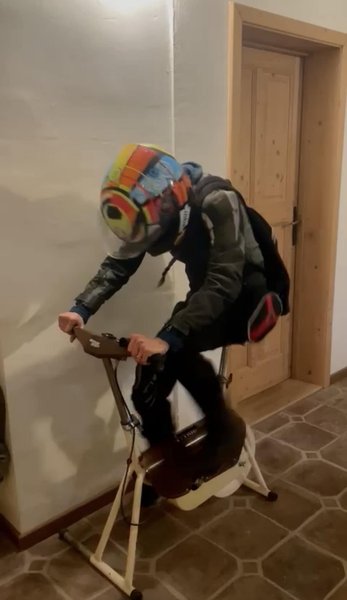 Pufika Totalbike-matricát is bevetett, a szobabiciklit nem a négy fal között használta