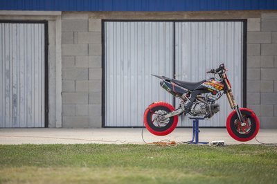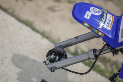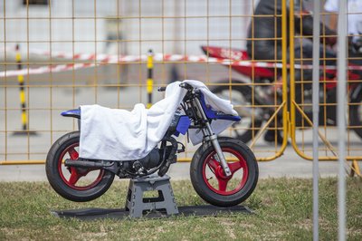 Polyák Bálint motorja, amivel a Senior Pitbike kategóriában indul. Ezek méretre gyerekeknek szánt supermotónak tűnnek, de a kezelőszervek jelzik, hogy elsősorban felnőttekre méretezték őket