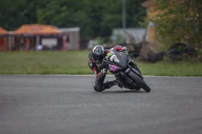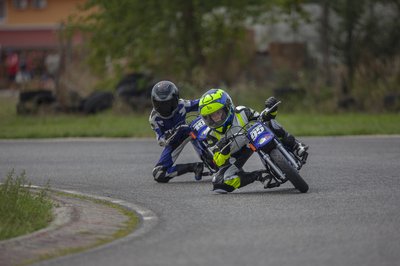 Az idősebb, rutinosabb srácok MiniGP-kategóriában űzték a kanyarokat és egymást. Levánszky Ádám lapon ment az Ohvale versenymotorjával