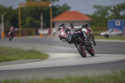 Valahogy mindig nehéz volt elhinnem a fővezérszerkesztőnek, amikor a KTM-jéről regélt, hogy ezekkel a supermotókkal ilyet lehet. Most már elhiszem. Kovács Gábor sem spórolt a kanyarokban a Senior Pitbike mezőnyében
