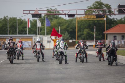 A CBR125 kupa mezőnye a rajtrácson. Mivel márkakupa, minden a versenyzőn múlik