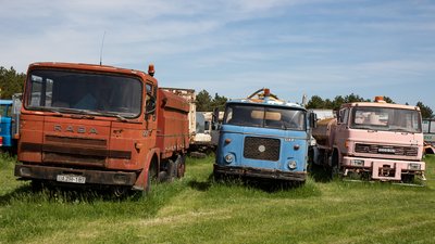 Persze a Rábák mellett parkolnak különböző generációs LIAZ teherautók is.