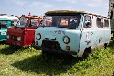 Ezt az UAZ-t pedig valami filmforgatáshoz használták, azért a koreai mentős festés.