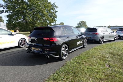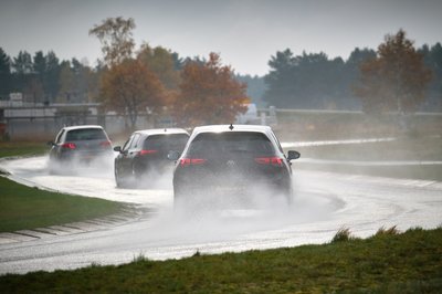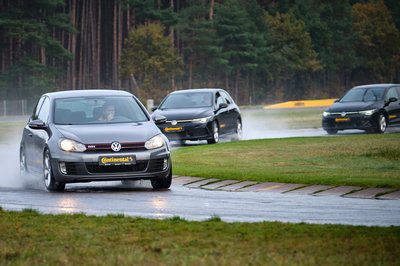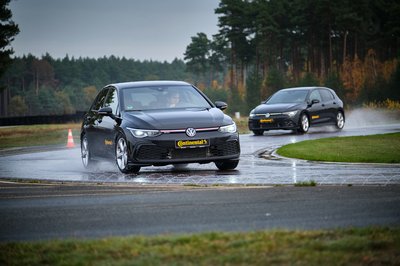 Rajtra várnak a GTI-k. A jobboldali sávban a prémium abroncsos, a balban az olcsó gumis autók