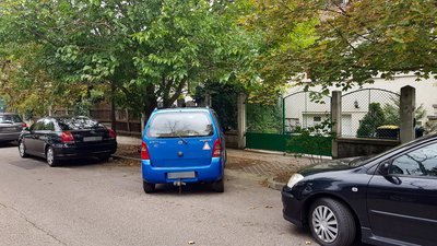 A szomszédhoz jövő ápoló néni rendszerint így parkol. Amíg csak ő, az még nem baj, tudok szólni neki