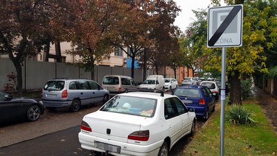Kezdődik a zóna. Ott szemben egyirányú az utca és a mellette levő áruház miatt eddig mindig tele volt autókkal