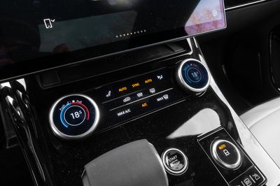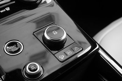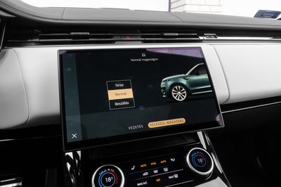 Világít az Auto felirat a menetprogramok tekerőgombján. Alatta a lejtmeneti segéd, az üzemmódválasztó és a terepfokozat elég apró kapcsológombja