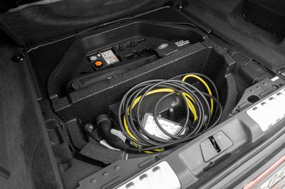 Komoly fedélrendszer óvja a töltőcsatlakozót. Váltóárammal csak egy fázissal, igaz 32 amperrel lehet tölteni. Viszont van egyenáramú gyorstöltési lehetőség is!
