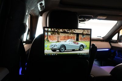 Erre jók a hátsó könyöklő csatlakozói, bárminek a képét kitehetjük a hátsó, 29 centi átlójú kijelzőkre
