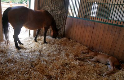 Érdemes az istállókat is megnézni, máris kiderült, hogy tévhit: a lovak is lefekszenek néha, pláne a kicsik