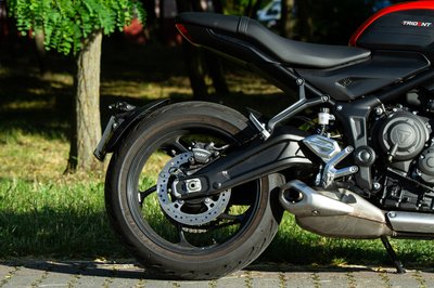 A blokk a 675-ös Street Triple-ből származik, de mára már messzire került a rokontól, amiről a rövidebb löket is sokat árulkodik