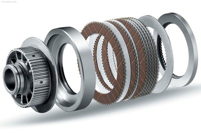 Az E-Diff két ilyen többtárcsás kuplunggal osztja a nyomatékot a két hátsó kerék között