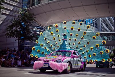 Pávaautó a 2020-as houstoni Art Car Parade-n