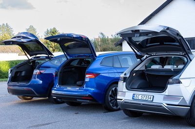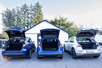 Balról jobbra: Tesla 854 liter+117 elöl, Skoda 585 liter, Hyundai 527 liter+27 elöl