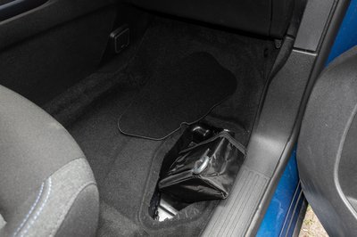 Az anyósülés előtt, külön padlórekeszben a defektjavító és a vonószem