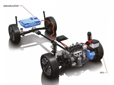 Alapvetően egy kézi váltós technikát egészítettek ki hibriddé, az akku hátulra került
