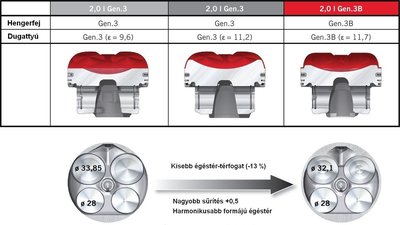 A nagyobb üzemanyag-megtakarítás érdekében a szelepek mérete és az égéstér is más az Audi B ciklusú motorjában