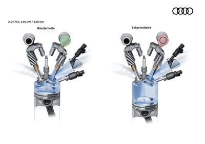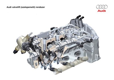 A ciklusok váltásához vezérlőbütyköt vált az Audi motorja, de a vezérműtengely szöghelyzete is változtatható