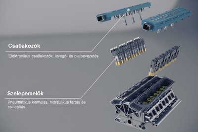 Elektromágnessel ki-be mozgatott csap húzza-tolja oldalirányban a vezérműtengelyt a bütyökváltáshoz