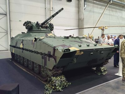 Ukrán Kevlar-E harcjármű haditechnikai bemutatón a háború előtt
