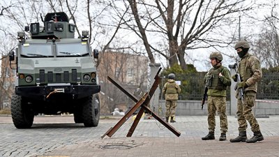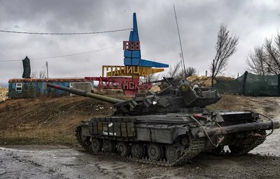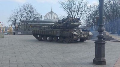 Ukrán T80-as reaktív páncélzattal, rendesen felöltözködve