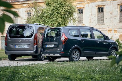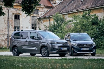 A Proace gyomra akkora, látszatra a Lodgy egészben beférne. Kialakítottak helyet a rolónak a padlón, a Daciájé otthon figyel egy szekrényben, használni viszont mindkettőt egyformán macerás