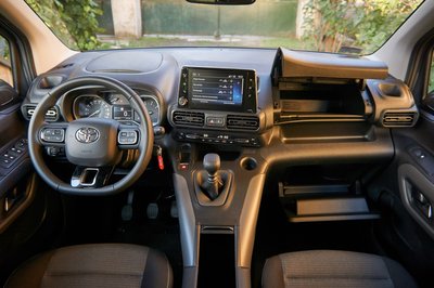 A Proace ajtajában nagy zseb van, az óracsoport feletti fedél csak azért nincs nyitva, mert nem marad úgy. Az utasnak és a sofőrnek is jut könyöklő